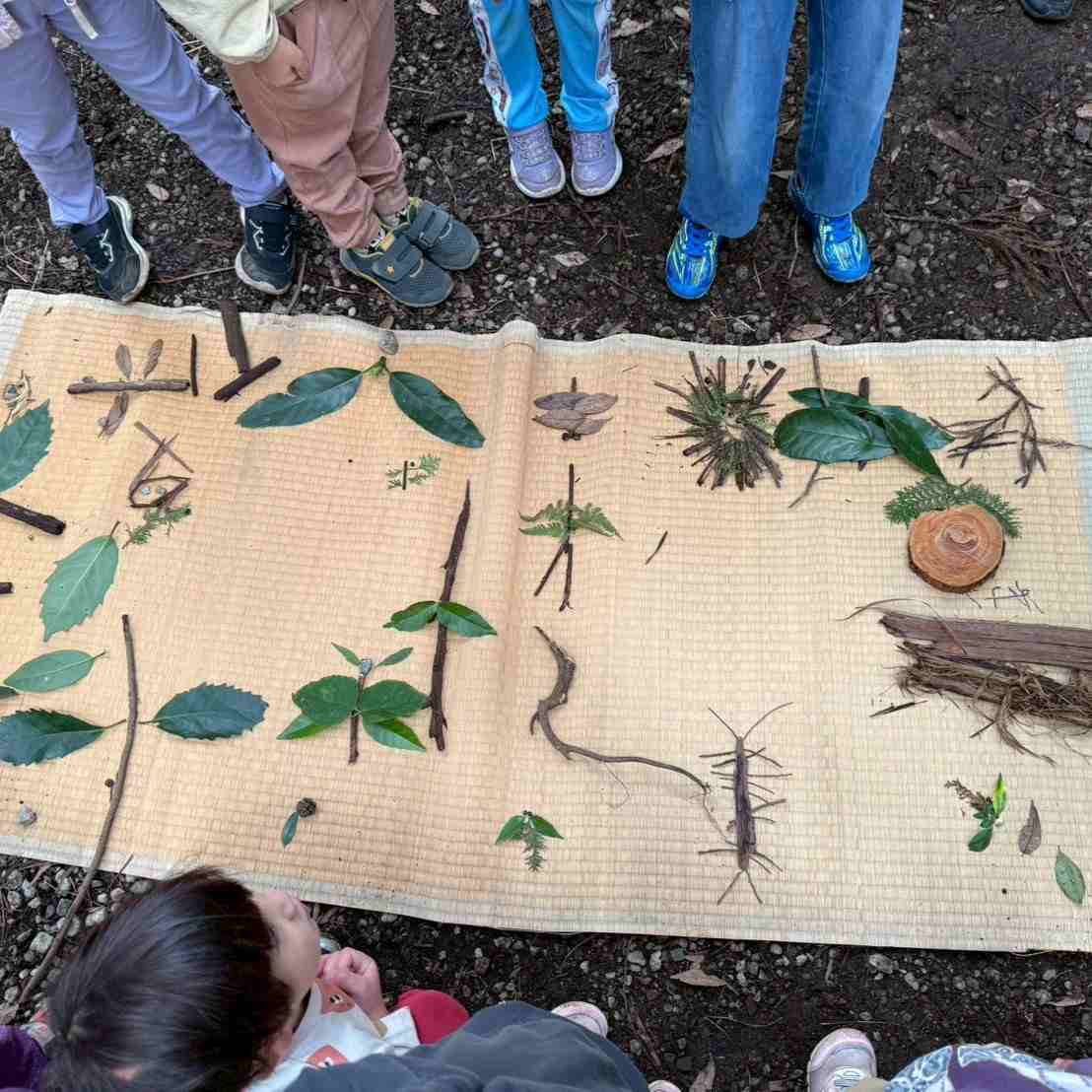 この日は北欧の森林環境教育プログラムのREAFアクティビティの試行を、インストラクターに来てもらって行い、午前中に4つのアクティビティを園児たちと楽しみました。