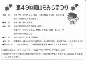 問い合わせ⇒城山もみじまつり実行委員会(城山まちづくりセンター内)042-783-8117