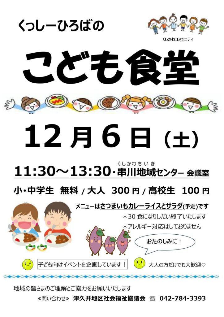 子供たちには生まれ育ったふるさとの魅力を伝えるとともに、地域の人たちとの繋がりを育んでもらいたい☺と願い、子どもを中心としたコミュニティの場を、串川地区の民生委員・児童委員の有志とボランティアが提供いたします。