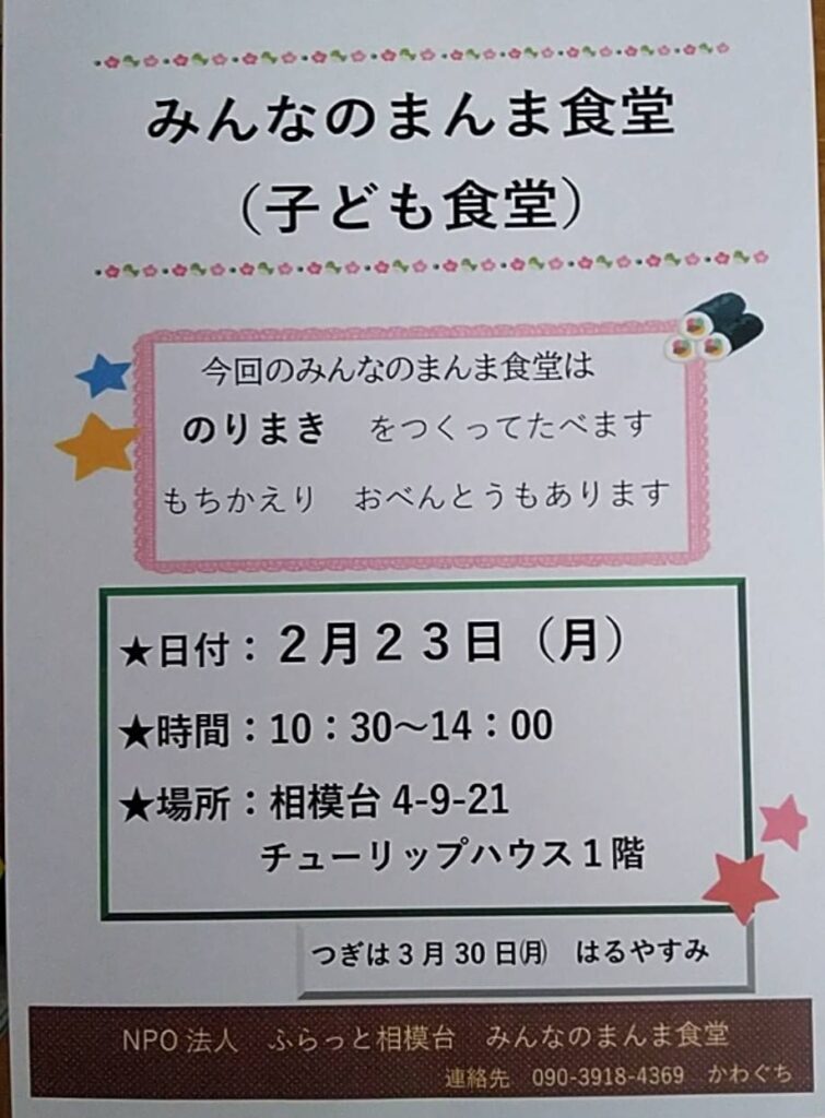 みんなのまんま食堂は、学校がお休みの月曜日にあります