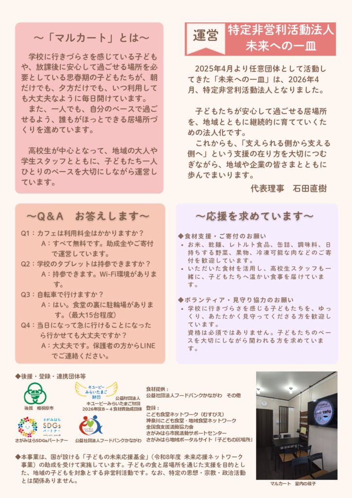 ☆インスタ⇒子ども食堂&カフェラウンジ「マルカート~未来への一皿」(@miraihenohitosara) • Instagram写真と動画