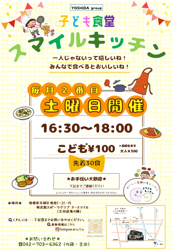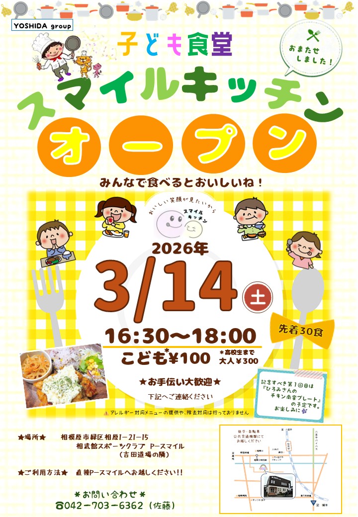 2026年3月、相原で子ども食堂をはじめます!スマイルキッチンは、相原のまちで生まれた子ども食堂です。