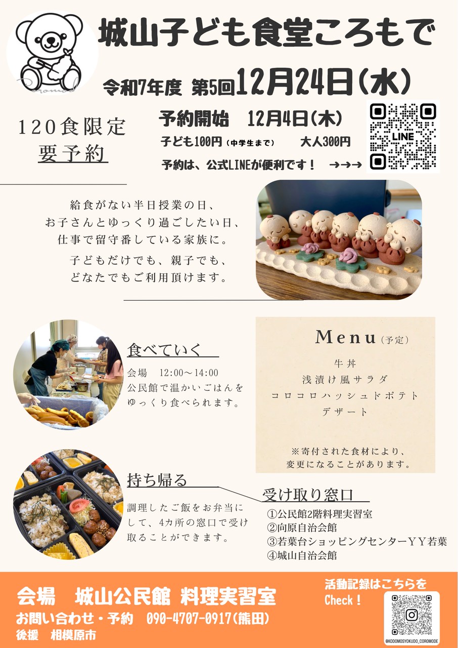 公式LINEアカウント⇒城山子ども食堂ころもで 公式LINE