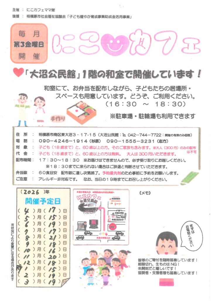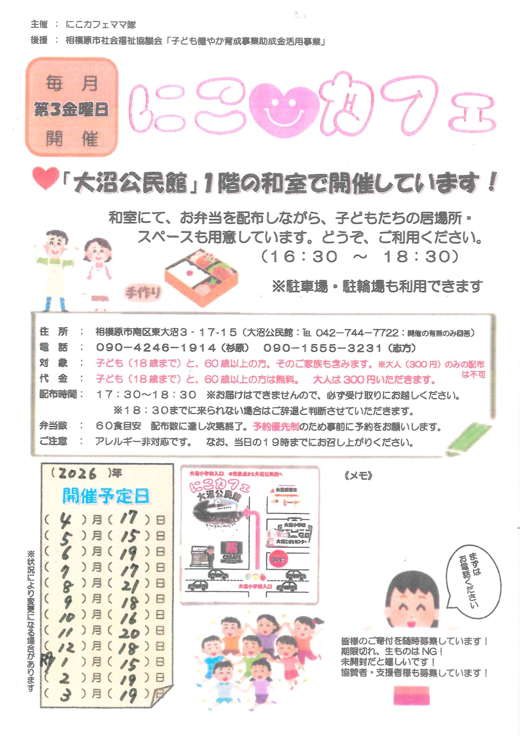 【開催日時】第3金曜日 17:00~19:00 ※お弁当の受取りは午後5時半から6時半です。
