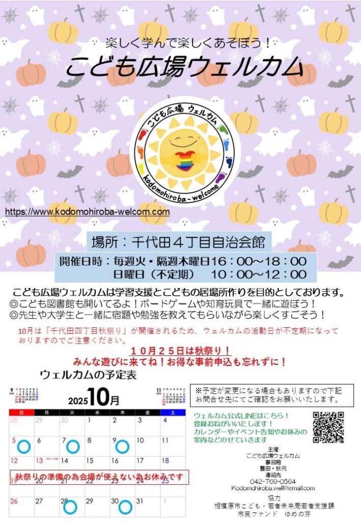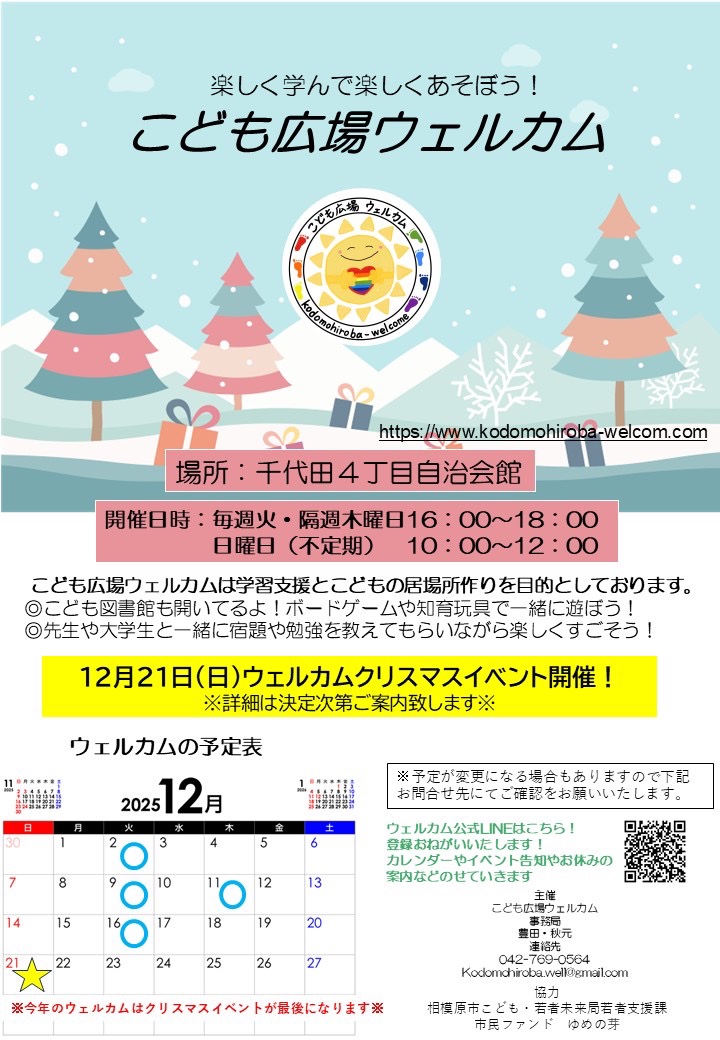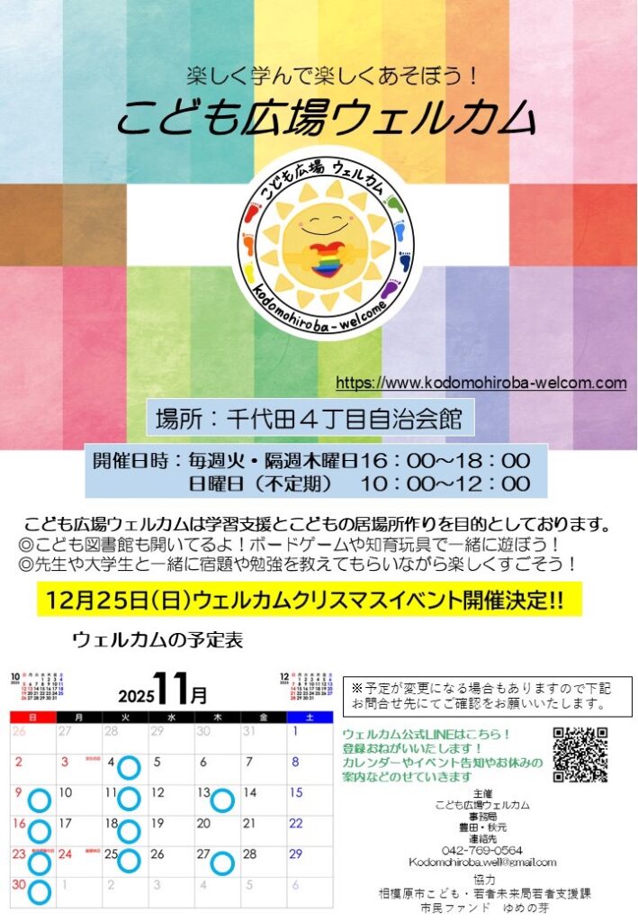 【連絡先】042-769-0564 kodomohiroba.well@gmail.com