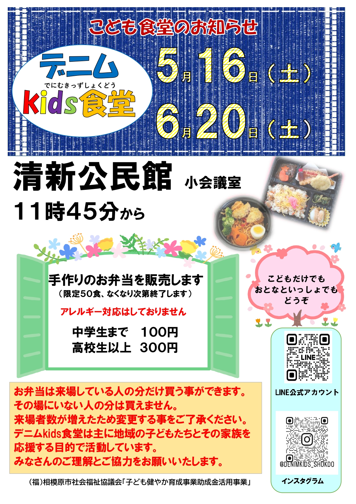 【参加費】中学生まで100円 高校生以上300円 ※限定50食