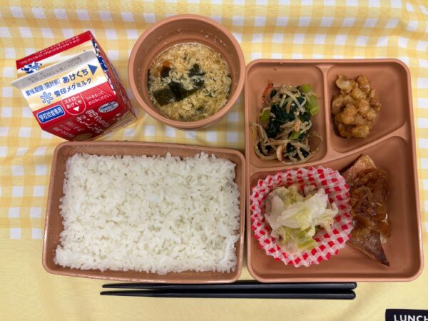 『The☆給食‼』 をテーマに、栄養バランスを考え、いつも使える食材で献立を立ててくれました。様々な食材を使い、彩りも意識した目でも楽しむことができる給食です。