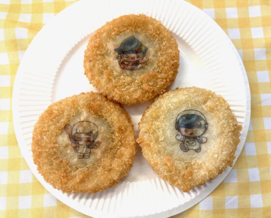コロッケは3種類の絵柄で、ランダムに給食へ入っています。