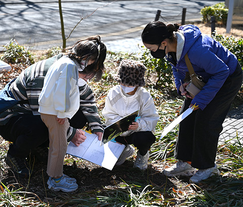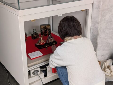 雛飾りは種類が多いため、完成図を片手に力を合わせて展示を完成させました。