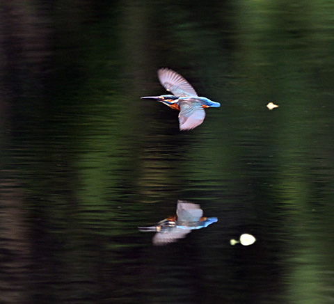 ミサゴを見ていると、目の前をチィーと鳴きながらカワセミが飛びました。
