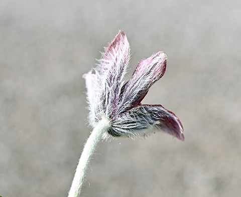 オキナグサ(翁草)の由来となった白い長軟毛もしっかり見られます。