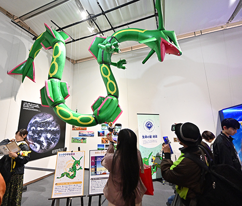 惑星、天体観測、星の一生、生命がどこからやってきたのか・・壮大なテーマについて、ポケモンをとおして紹介した展示です。ポケモンの深遠な世界観に浸りつつ、最新の天文学を学べます。