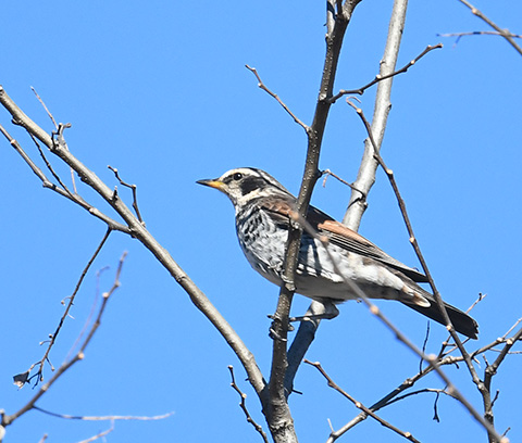 「ヒッ、ヒッ、カチカチッ」と鳴きながら縄張り争いをしている姿が見られます。ジョウビタキは冬の間単独で過ごし、それぞれが縄張りを持ちます。冬の使者と言いましたが、じつは近年、全国各地の高原地帯などで繁殖するようになりました。本州中部では、清里高原など山梨県から長野県で分布が広がりつつあります。県内ではまだ確認されていませんが、もし繁殖するとしたら、相模原市内の緑区あたりから繁殖が始まるのではないかと予想しています。
