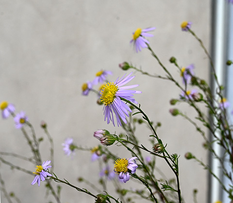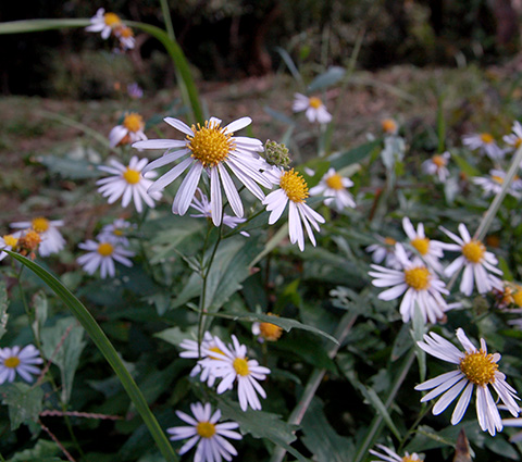 そして、このブログにもたびたび登場するカワラノギクもAster(アスター)の一種です。系統保存のために博物館で栽培している株もたくさんの花をつけています。
