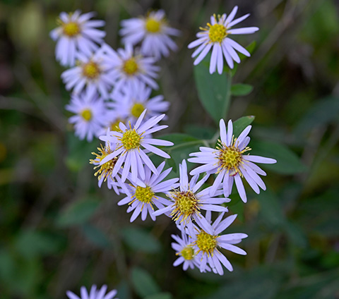 11月中旬に入り、野菊の季節になりました。一般に野菊と呼ばれるものにはいくつかのグループがあり、花の色も白、黄、薄紫などがあります。その中で博物館周辺にも多く、野菊の代表格と言えるのがシオン属(Aster)の数種です。博物館お隣の樹林地では、その中の一種であるノコンギクがたくさん咲いています。