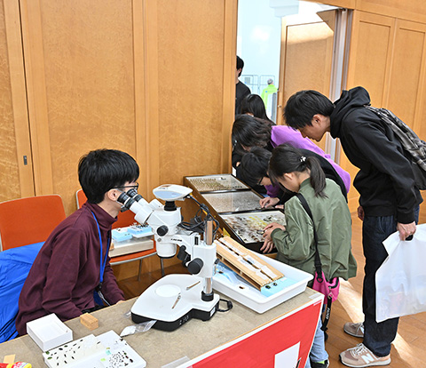 他にも、地質分野の「地質資料を顕微鏡で見てみよう ミニ」や考古分野の「この穴、なんだろう?」、民俗分野の「チャレンジ!今と昔の道具マッチング」が行われ、たくさんの方にお楽しみいただきました。