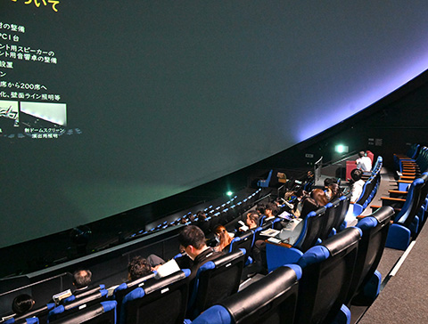 プラネタリウムの一般投影を観覧していただいた後、大会議室へ移動して、同じく天文担当学芸員からリニューアルへ至る経過を説明しました。