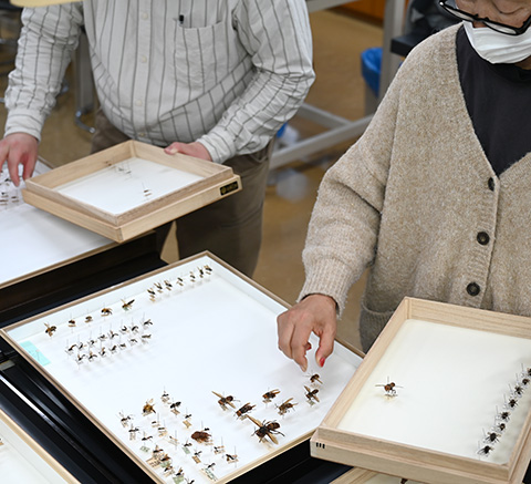 最後は動物担当学芸員が、昆虫標本を使って博物館における標本の意義や、昆虫の多様性を実感してもらう実習を行いました。