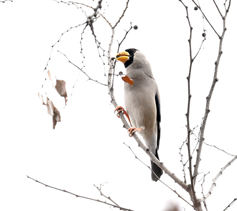少し間を置いて、イカルもやってきました。こちらも20羽ほどの群で飛び回っています。
