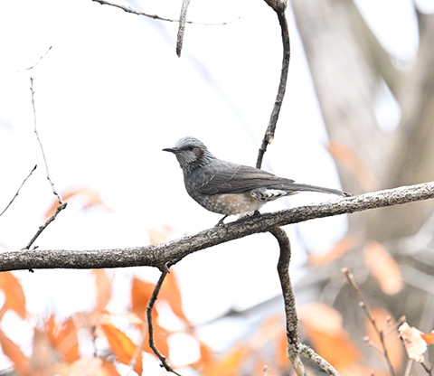 ヒヨドリも群れて鳴いていました。一年中いるように見えるヒヨドリですが、冬になると北日本で繁殖したヒヨドリが南へ移動してきます。さらに南へ移動したり、関東地方で繁殖したヒヨドリも南へ移動する個体もいるようで、なかなか複雑ですね。