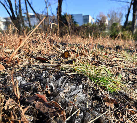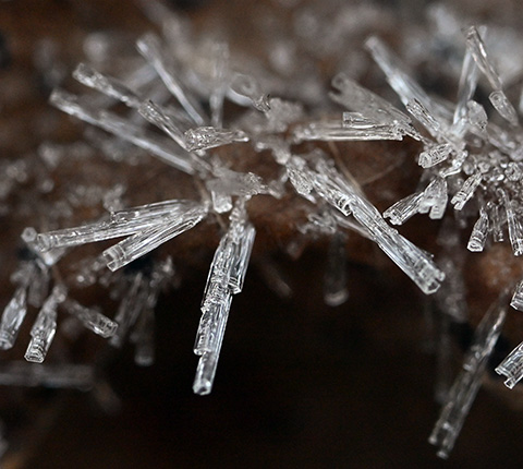 快晴の朝を迎えて、気温もぐっと冷え込みました。博物館お隣の樹林地にはたくさんの霜柱が立ちました。