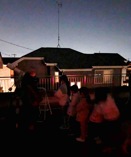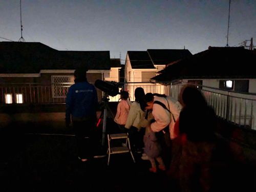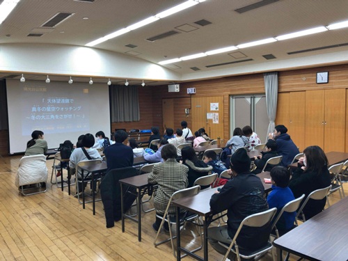 1月16日、市内中央区の陽光台公民館で実施された青少年部事業「天体望遠鏡で真冬の星空ウォッチング~冬の大三角をさがせ!~」において、当館の天文担当学芸員と天文クラブ会員が講師を務め、出張観望会を行いました。