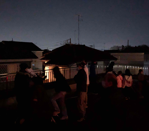 座学の後は屋外テラスへ移動し、星空観望会です。この日は雲一つない晴れの中、気温もそこまで下がらなかったため、観察しやすい天候に恵まれました。