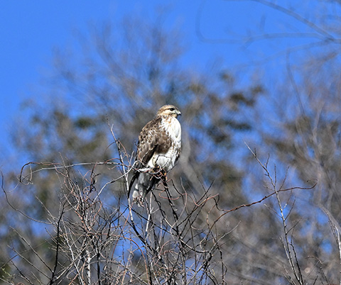 立春の2月4日、相模川の河原を歩きました。ノスリが青空をバックにカッコよくとまっていました。
