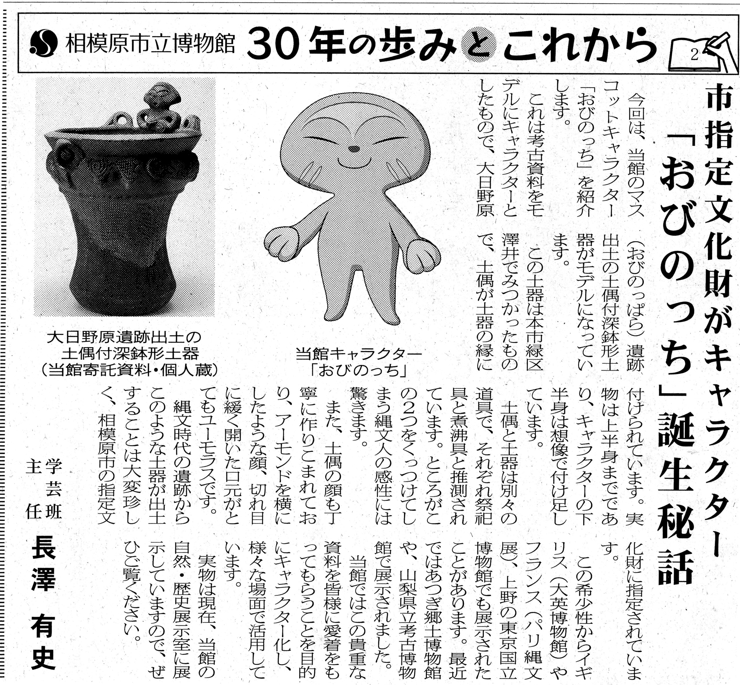 今回は考古担当学芸員による当館キャラクターの「おびのっち」について。