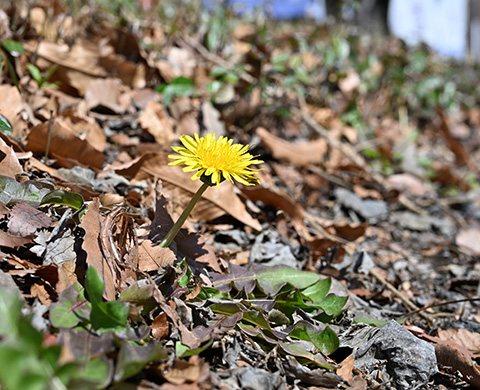 3月11日、2011年の東日本大震災から15年目の日に、博物館前の歩道沿いでカントウタンポポが咲きました。