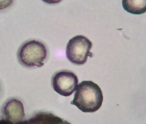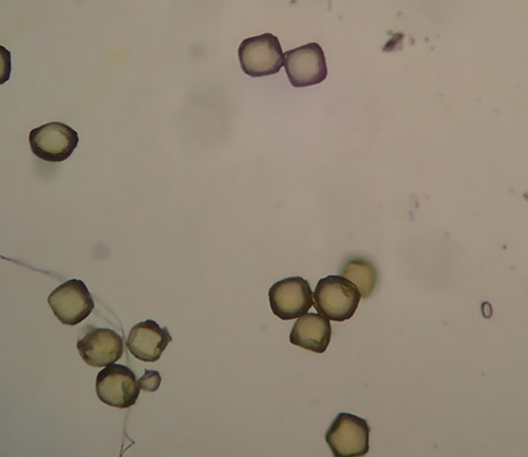大きくて、低倍率でもはっきり見えたウグイスカグラの花粉