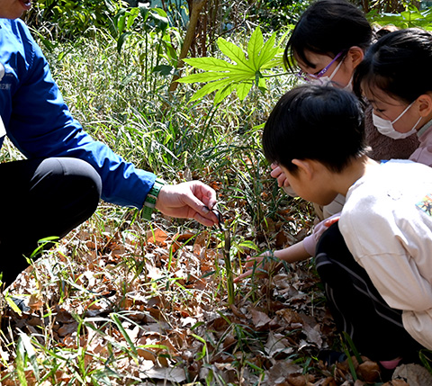 さらに、最初に花を観察したミミガタテンナンショウは、事前に採って用意してあったものを見てもらいました。