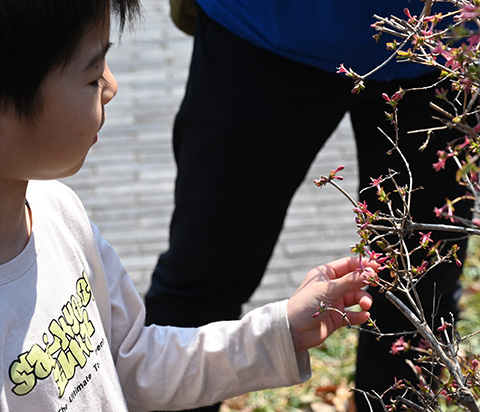 子供たちも、不思議なカタチの花に興味津々でした。
