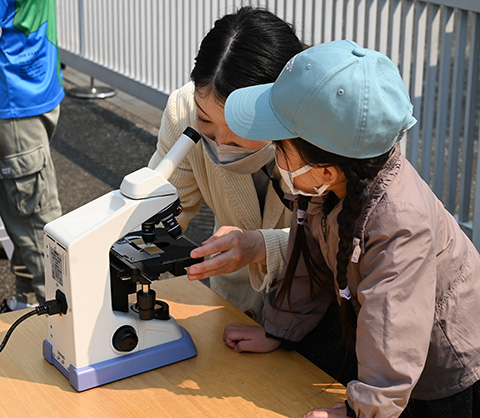 顕微鏡は慣れないと見えにくいのですが、全員がスギの花粉を観察できました。