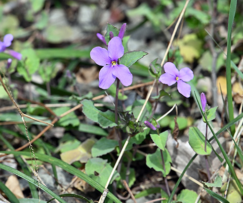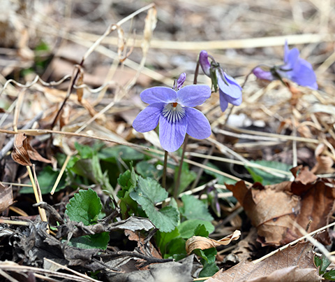 3月18日、博物館お隣の樹林地を春の花チェックをしながら歩きました。咲き始めた花がたくさんあって紹介しきれないのですが、まずはこちら、タチツボスミレです。