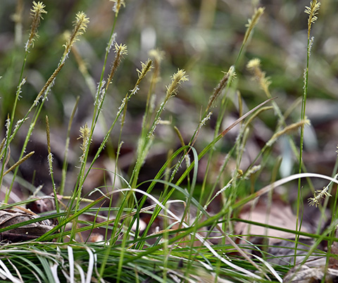 こちらはあまり目立つ花ではありませんが、かわいらしい姿のヒメカンスゲです。カヤツリグサ科のスゲの仲間では最も普通に見られる種類です。