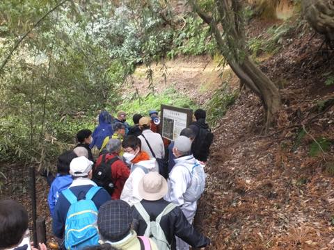 3月20日に大野南公民館主催の「春のさわやかウォーク」が開催され、当館地質担当学芸員が地形や地質について解説しました。
