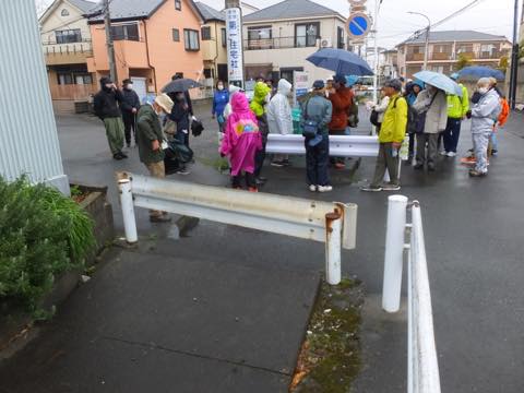 雨が降ったり止んだりのあいにくの天気でしたが、地形や地層を観察しながら歩くことができました。普段,気にしていない坂道なども昔の川や沼の痕跡だったりします。ちょっとした高低差に気をつけながら歩くと、いつも見慣れている景色が違ったものに見えてくるかもしれません。