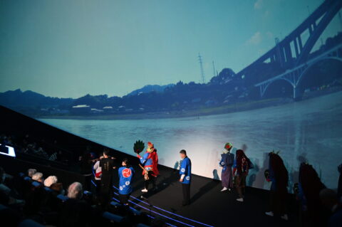 前半は小倉橋の全天周映像でした。 大島は相模川の小倉橋近くに位置します。