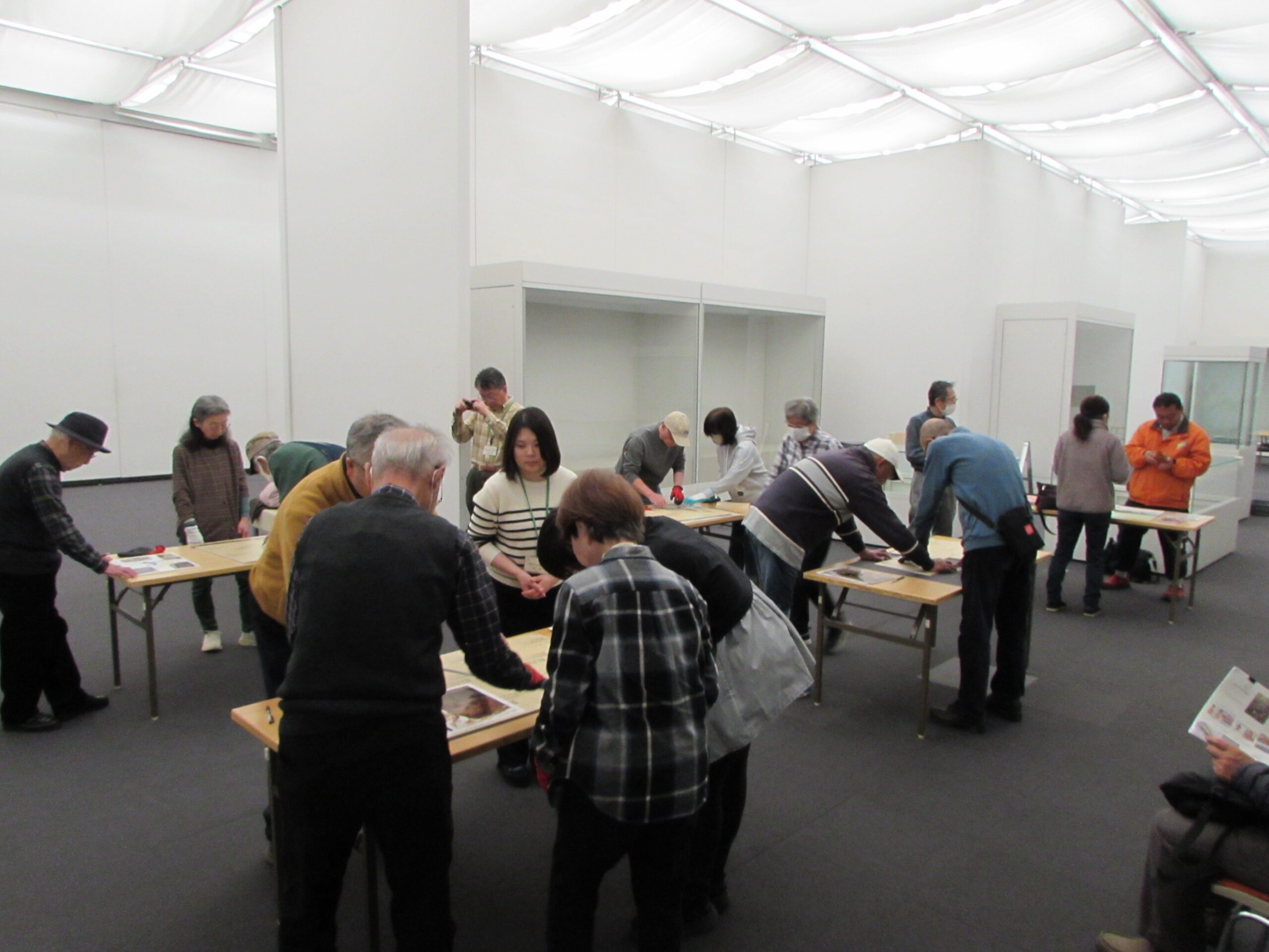 パネルは当館の考古担当学芸員が案を作成したものを、パネル用の紙に打ち出しし、ボランティアさんと一緒に作成しました。