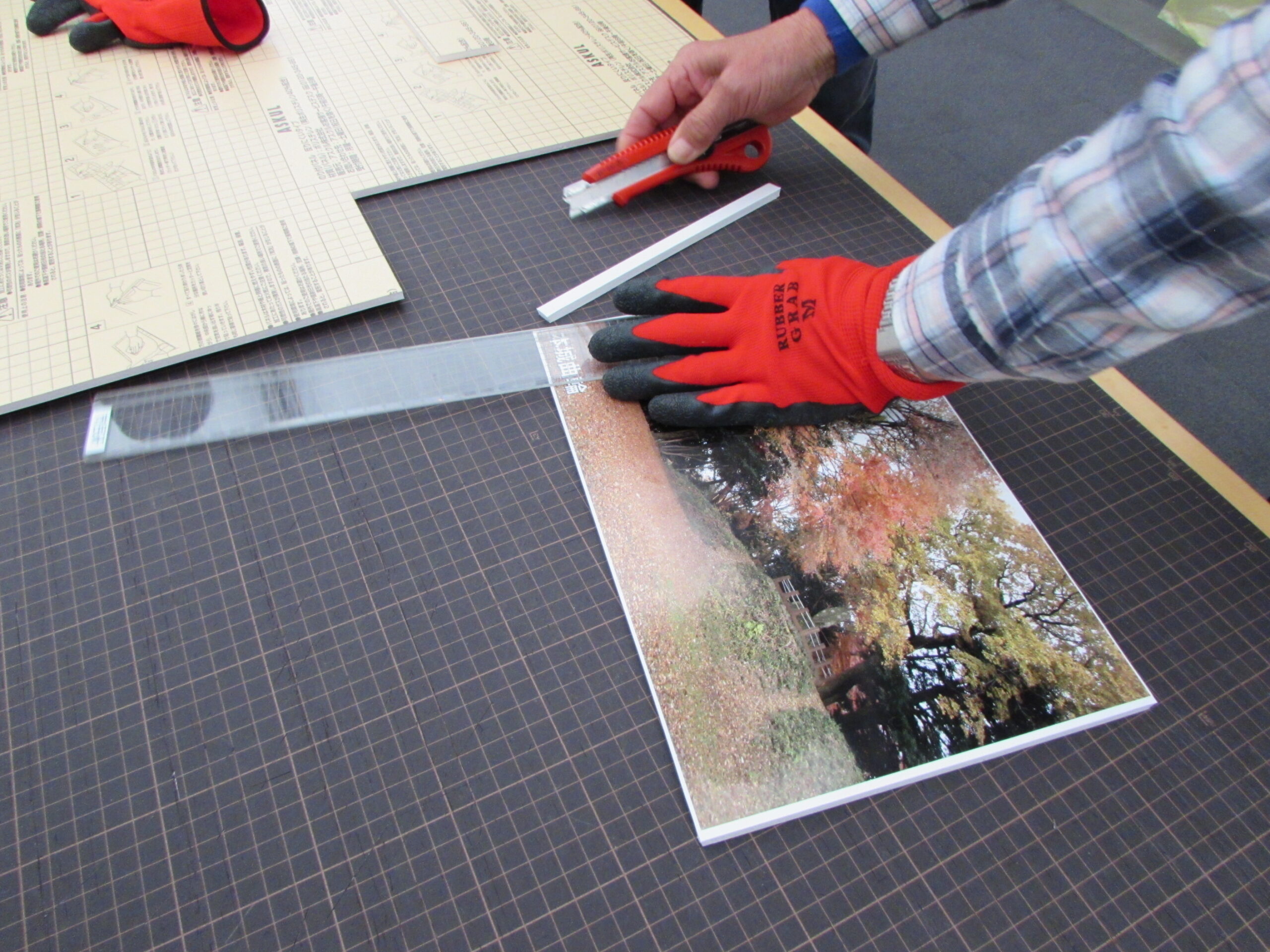 パネルの厚さは5㎜。一度では切れないので、3~5回ほど繰り返して切ります。