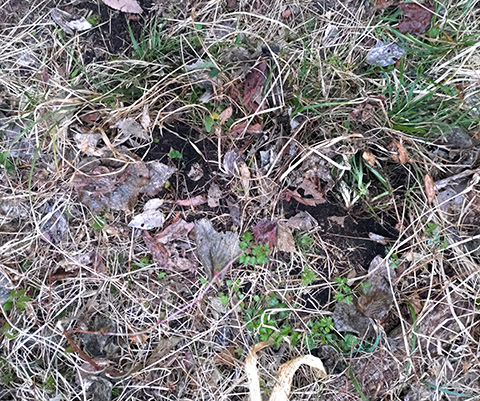3月下旬、開花前のフデリンドウを盗んだ痕と思われるこの穴が、遊歩道沿いに20か所ほど確認されました。