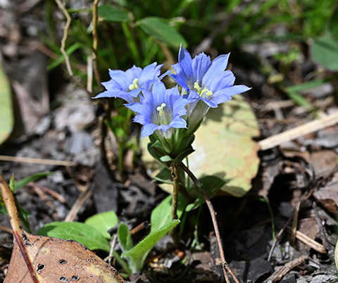 今年もフデリンドウが見ごろを迎えています。写真は、博物館前庭に咲いている株です。