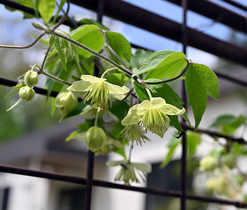フェンスで咲いているシロバナハンショウヅル