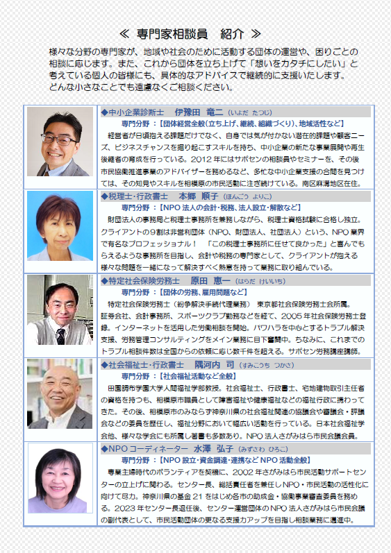 ◆ 「相談会チラシ」、「専門家相談員 紹介」、「相談会の流れ」 など、