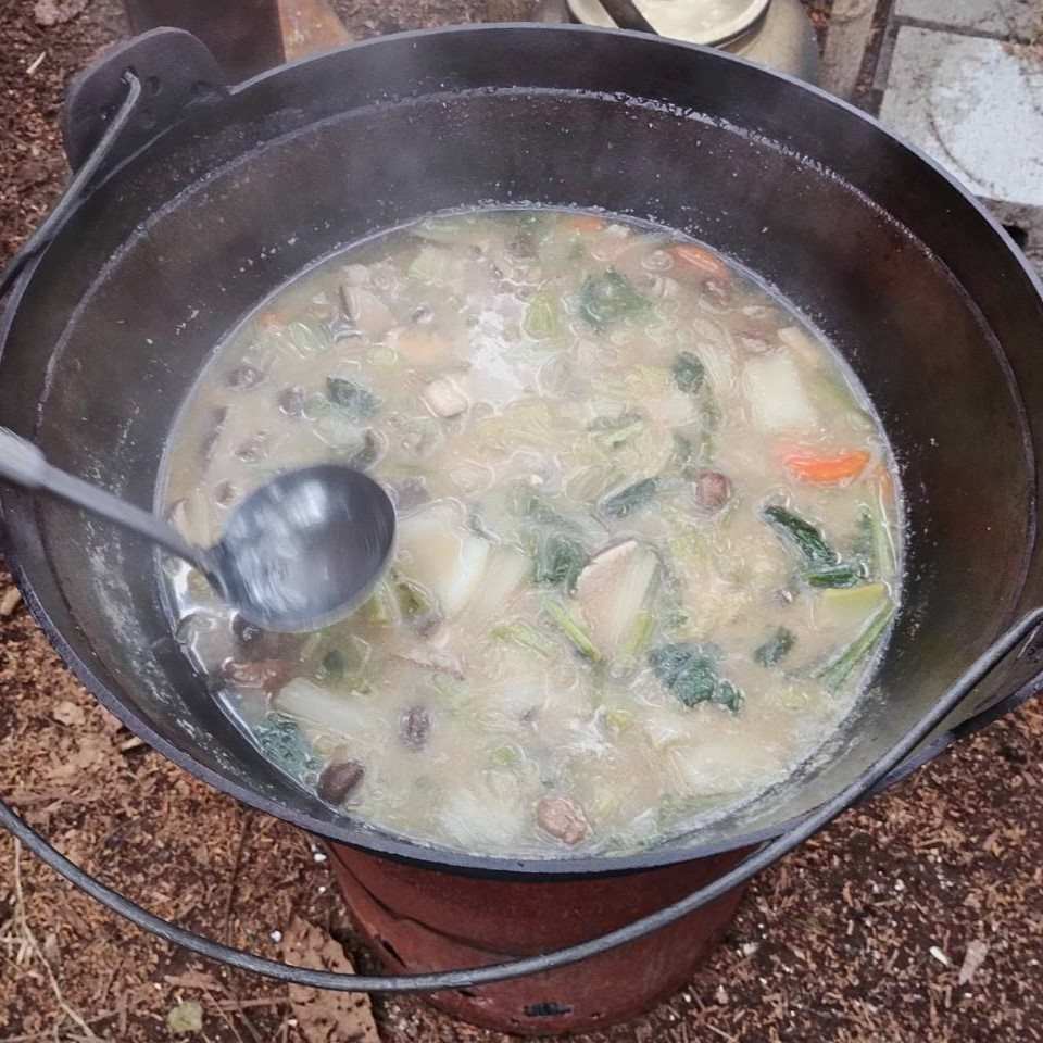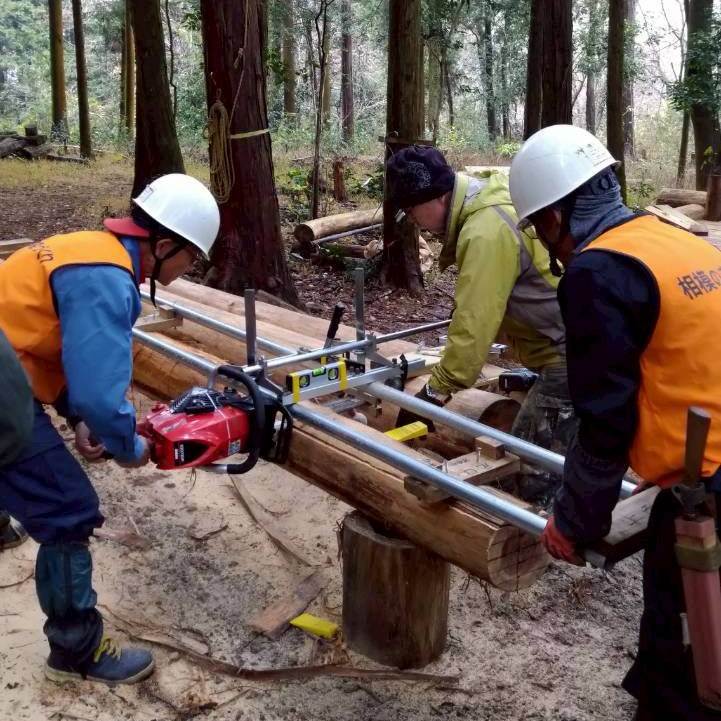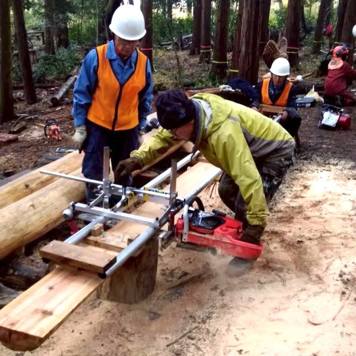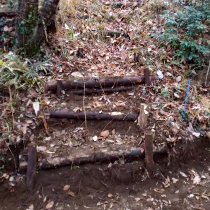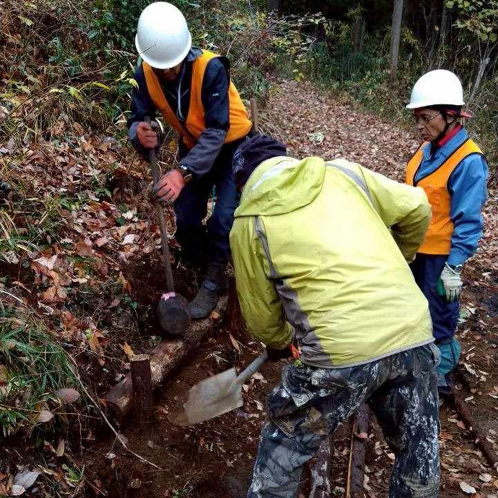 12月21日(日)定例活動 2025/12/23 Tweet Pocket 2025年最後の活動は降雨の合間になりました。ツリーデッキ床のチェーンソー製材、森の歩道階段の修理、歩道階段の枯葉掃除、イベント用の木車輪づくりを行い、昼食には豚汁や餅と育てたシイタケを焼いて1年の締めを行いました。 来年も益々活発な活動ができますように。