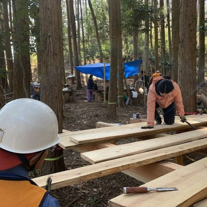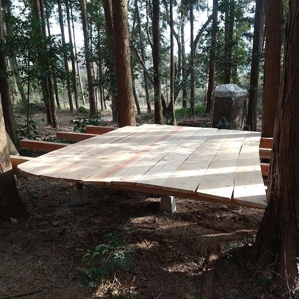 ツリーデッキの床板の面取りと端部のカーブ仕上をしました。