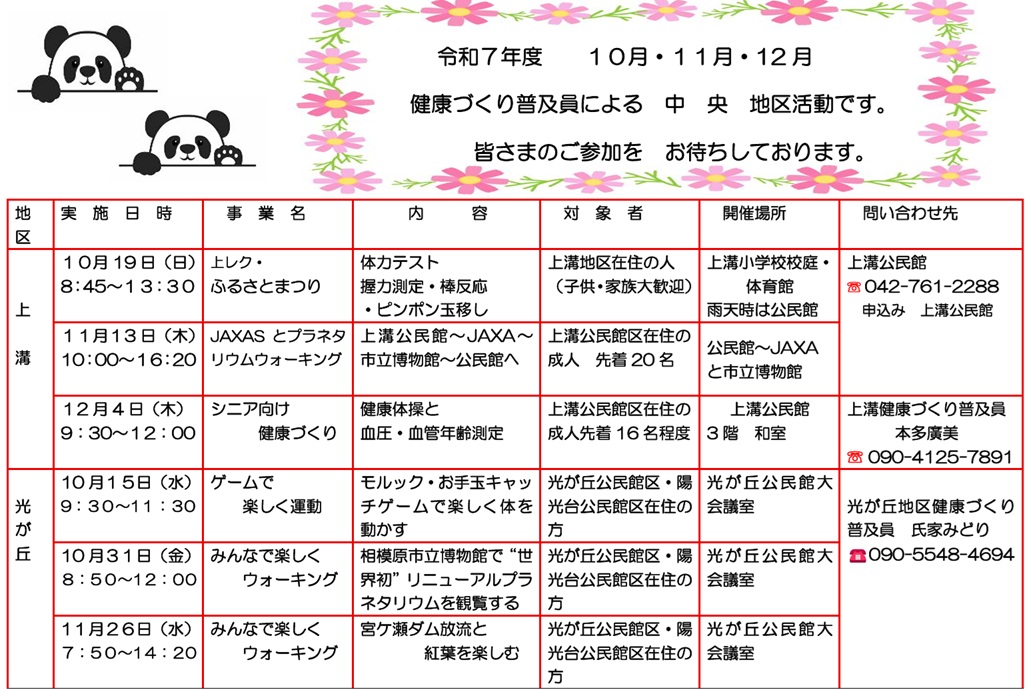 令和7年 10月、11月、12月の事業予定をお知らせします。