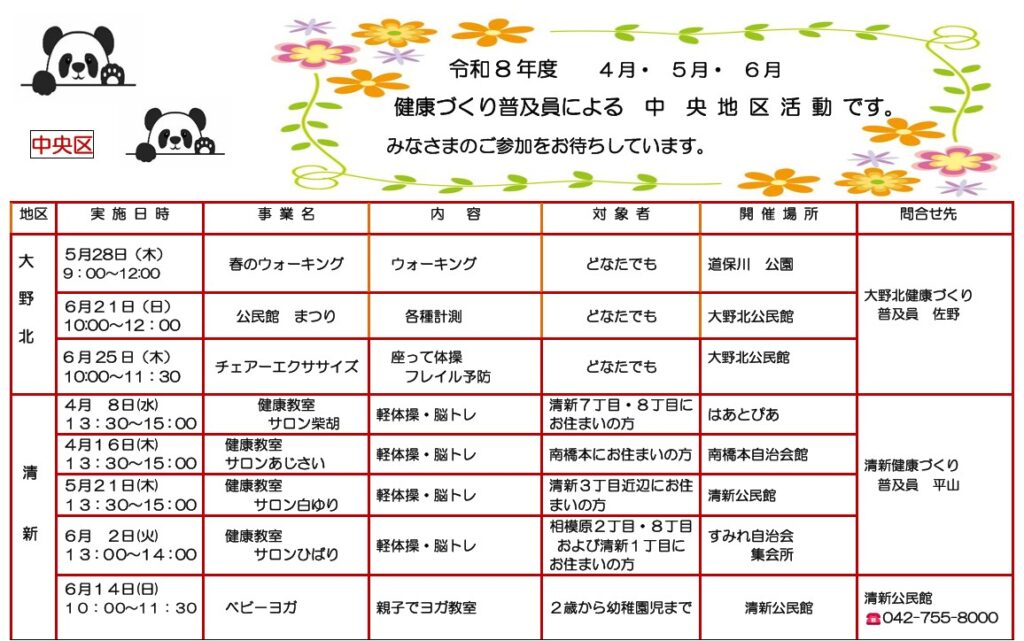 令和8年 4月、5月、6月の事業予定をお知らせします。