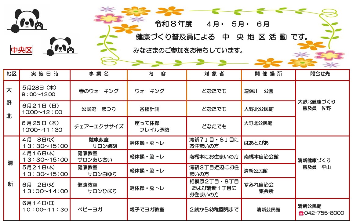 中央区の健康づくり普及員が実施する健康づくり事業です